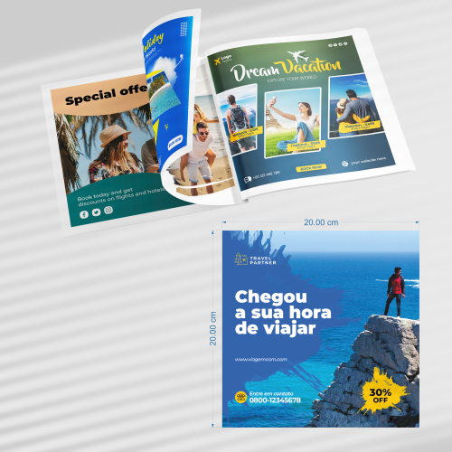 Cobertura: 12 Páginas - 1 Dobra e 2 Grampos - Laminação Brilho Frente e Verso