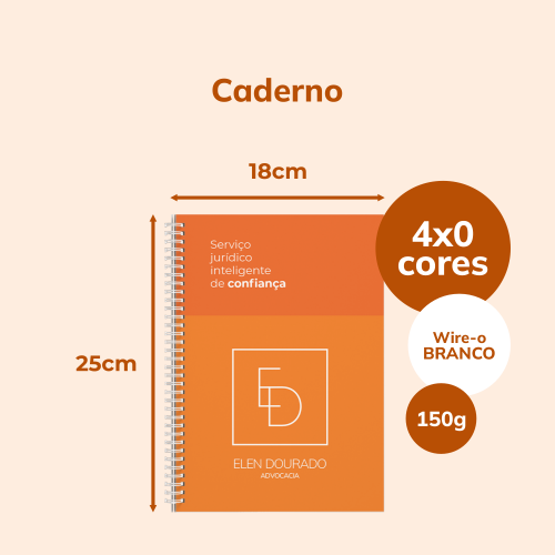 Cobertura: Laminação Fosca - Com Pauta - Miolo Padrão - Wire-o Branco - 96 Folhas