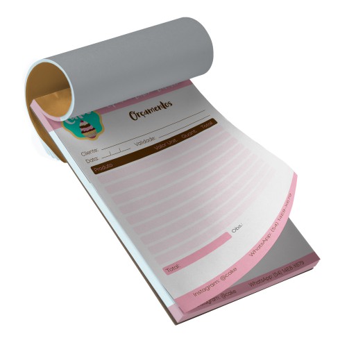 Material: 1ª Via Branca e 2ª Via Amarela 53g/m²